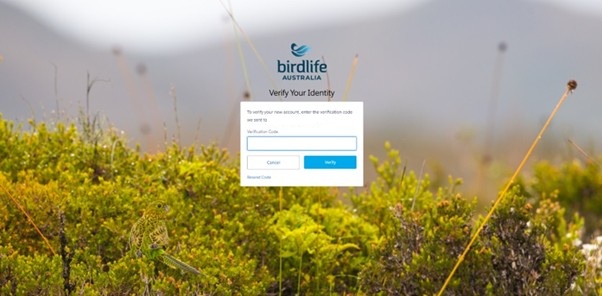 If you are creating a new myBirdLife Australia account, you’ll be asked to verify your details via a code emailed to you. Once you enter this code (or click the verification link), you should stay logged in.